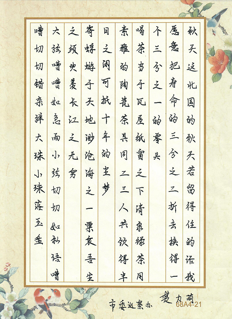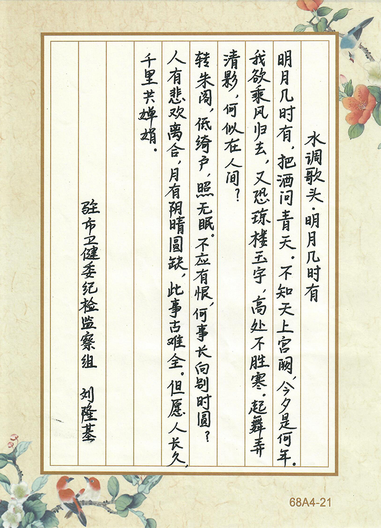 为庆祝党的二十大胜利召开,展现青年纪检监察干部良好精神风貌,市纪委监委青工委牵头在委机关、宣教基地、派驻纪检监察组、巡察办40周岁以下党员干部中组织开展了“喜迎二十大 出彩纪检人”硬笔书法比赛活动。