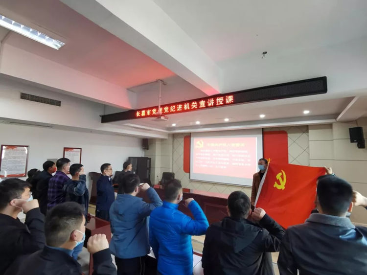 派驻第九纪检监察组通过重温入党誓词、宣讲授课和观看警示教育片等形式对市科工局、市商务局、市市场发展服务中心开展党规党纪进机关宣讲授课,要求全体党员干部牢固树立廉洁从政意识,增强拒腐防变思想防线。
