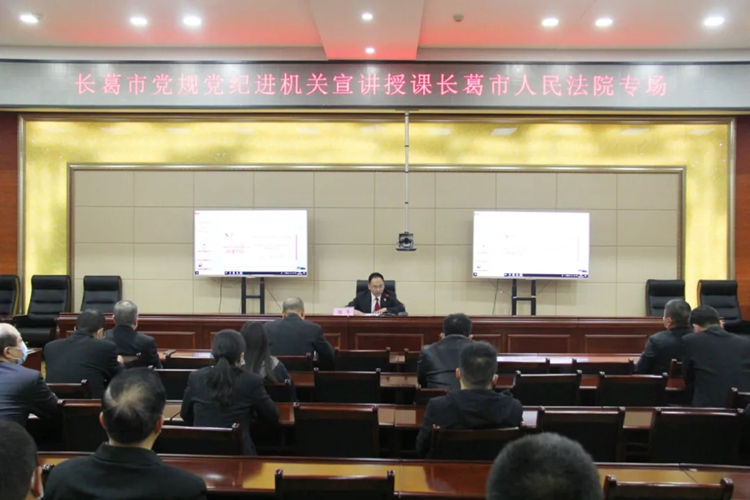 派驻第十六纪检监察组组长杨军在市人民法院开展党规党纪进机关宣讲活动,要求全体干警筑牢思想防线,严守工作纪律,自觉接受监督,持续营造风清气正的良好政治生态。